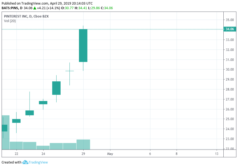 PINS-Pinterest Inc on the NYSE. Chart is courtesy of http://www.tradingview.com