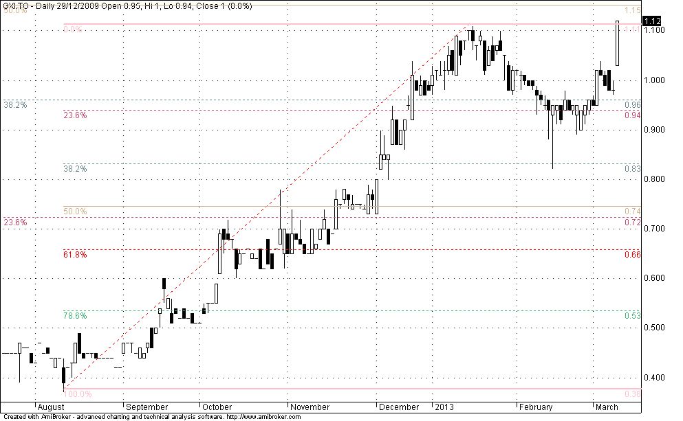GuestLogix Stock Chart – Shorter Term View – symbol GXI trading on stock exchange in Toronto. Price Breakout on Mar 11